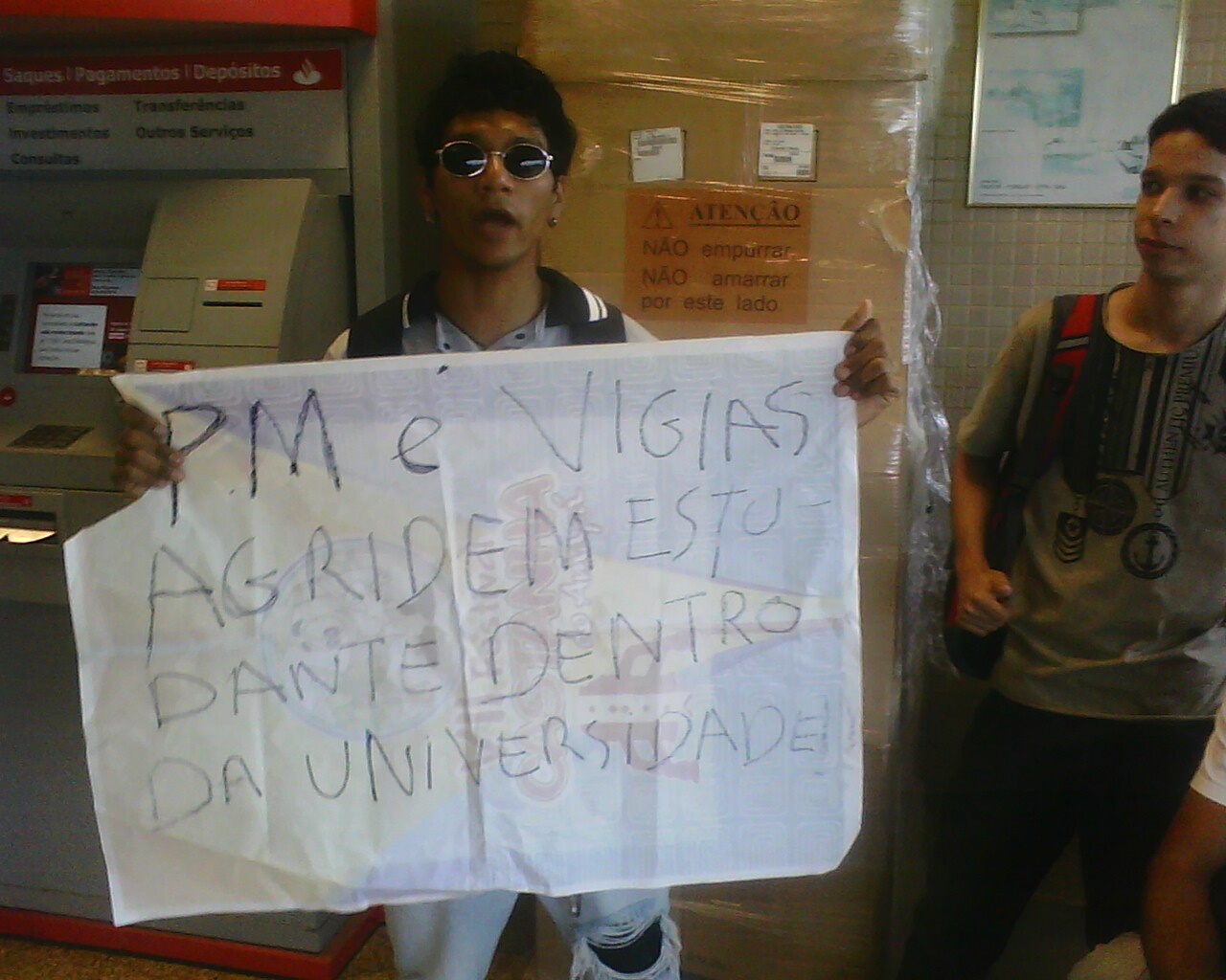 Os estudantes disseram que os vigilantes tentaram expulsar eles da Universidade, mas explicaram que não conseguiram pegar ônibus depois de meia-noite e que ficariam no CAHIS até de manhã.