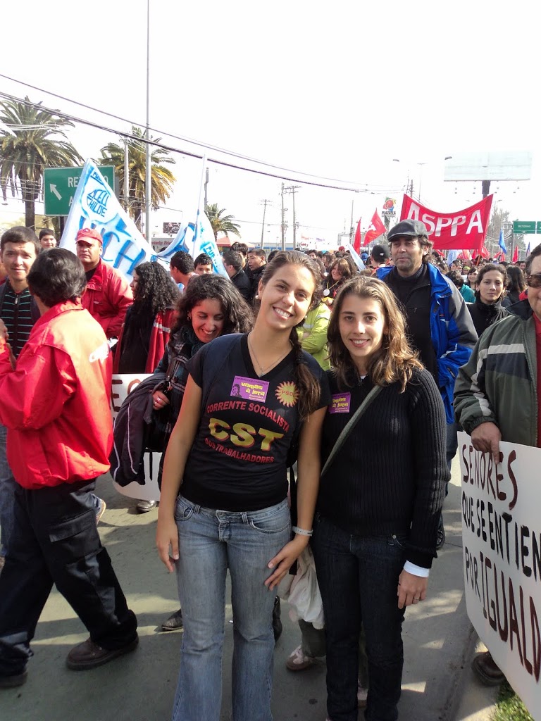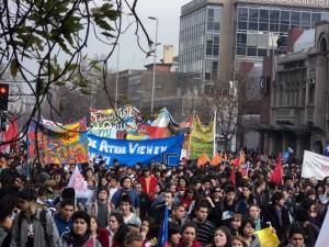 Desde o dia 23/08 a Brigada Indignada do Vamos à Luta está acompanhando as mobilizações da juventude chilena. As companheiras Bárbara Sinedino da UNIRIO e Júlia Schmidt da UFF são nossas correspondentes. Abaixo algumas fotos das mobilizações nos dias 24 e 25/08 quando ocorreu a paralisação nacional em que a classe trabalhadora entrou em cena ao lado dos estudantes em defesa de uma educação pública e por reforma constitucional no país.