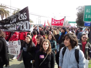 O ato iniciou as nove da manhã com quatro marchas que após quase quatro horas de caminhada se juntaram na praça em frente ao Palácio de La Moneda, a sede do governo. Quando lá chegamos o aparato da repressão estava organizado: camburões, micro-ônibus, cachorros e a cavalaria da policia preparada para agir.