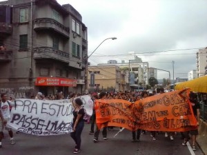 O dia 09 de abril não sairá tão cedo da cabeça dos estudantes do Julinho, do Grêmio e do Vamos à Luta, pois mais de 300 secundaristas da escola tomaram as ruas contra o aumento da passagem e na defesa do passa livre estudantil. “NÃO VAI TER COPA E NEM AUMENTO”, esse é o grito da juventude indignada que quer repetir as Jornadas de Junho de 2013, quando aumentos de tarifas foram revogados em centenas de cidades, por milhões de pessoas que tomaram as ruas de norte a sul do Brasil. A galera do Julinho aprendeu com a vitoriosa greve dos garis do Rio de Janeiro, e por isso cantou que é necessário “MOBILIZAR COMO OS GARIS, QUE A PASSAGEM VAI CAIR”!Não são raras as vezes em que os estudantes do ensino médio têm que escolher qual aula devem ir, pois sequer têm o dinheiro da passagem para se deslocar até a escola todos os dias. Essa é a realidade que o prefeito Fortunati vai agravar ainda mais com o aumento da passagem para R$ 2,95. É preciso apostar na unidade dos estudantes com os rodoviários, professores e todos aqueles que constroem o Bloco de Lutas e, a partir desta unidade, construir grandes mobilizações que possam derrotar, mais uma vez, o aumento da passagem e obter vitórias como o passa livre.